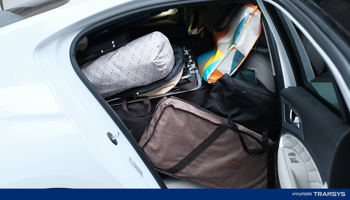 첫 캠핑 전날, 캠핑용품들로 테트리스를 시작했습니다. 캠핑용품들을 넣었다가 뺐다가 방향을 바꿨다가 시트를 접었다가… 할 수 있는 시도를 모두 해보고 이리저리 넣어보니 차에 캠핑용품을 싣는 데만 1시간이 걸렸습니다. 아이의 카시트가 있는 옆자리는 원래 아내의 자리인데 캠핑용품을 넣다 보니 저렇게 공간이 변해버렸습니다. (저렇게 쓰라고 현대트랜시스가 만들어준 시트가 아닐 텐데 말이죠…(웃음))