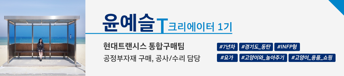직장생활을 하며 반려동물을 돌보며 지내는 수많은 사람, 저처럼 오늘도 힘들지만, 행복한 하루를 보내고 있을 것입니다. 바쁜 일상에 단비처럼 내려온 현대트랜시스의 유연근무제 덕분에 저는 비로소 소중한 반려동물과 함께 행복한 일상을 보낼 수 있게 되었죠. 내가 아닌 다른 누군가를 보살핀다는 건 분명 힘든 일이지만, 분명 그만큼의 행복으로 보상받을 수 있습니다. 앞으로도 저를 포함한 세상 모든 반려인이 반려동물과 함께 매일매일 더 즐겁고 사랑 넘치는 날들을 보내길 바랍니다.