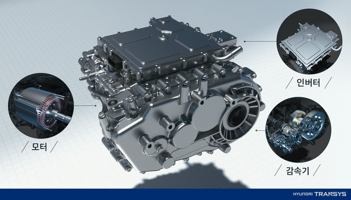 전기차 시장을 선도해 나아가기 위해서는 고연비의 친환경 구동 시스템 개발이 매우 중요합니다. 현대트랜시스는 친환경 자동차용 EV 구동시스템을 개발했습니다. 여행 캐리어에 짐을 넣을 때 짐 하나하나를 따로따로 넣으면 짐이 흩어질 뿐만 아니라, 공간도 여기저기 차지하여 짐을 몇 개 꾸리지 못하는 경우가 있습니다. 반면에 여행용 파우치를 활용하여 하나의 파우치에 모아 컴팩트하게 짐을 꾸리면 캐리어 공간을 효율적으로 활용할 수 있죠. 자동차 속 공간도 마찬가지입니다. 현대트랜시스는 보이지 않는 자동차 속 공간을 더욱 자유롭고 효율적으로 설계할 수 있도록 3 in 1EV 구동시스템이라는 새로운 통합구조의 파워트레인을 선보였습니다.