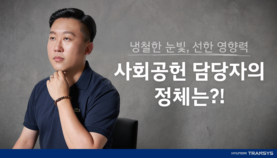 저는 현대트랜시스 비즈니스지원팀에서 8년 차로 근무하는 황종민 매니저입니다. 제가 지향하는 미래를 가장 함축적으로 줄인다면, ‘함께 움직이는 세상’이 아닐까 싶어요. 이 말은 사실 우리회사의 사회공헌 미래 키워드인데요. 우리회사는 자동차의 바퀴를 움직이는 구동장치를 생산하면서 편하고 안전하게 이동할 수 있는 자동차 시트를 생산을 하고 있는 모빌리티 기업입니다. 그렇기에 다 함께 움직이는 세상을 만든다는 이 모토가 정말 잘 맞는다고 생각해요. 그중에 사회공헌 담당자로서 가장 필요한 단어는 ‘함께’이겠죠.