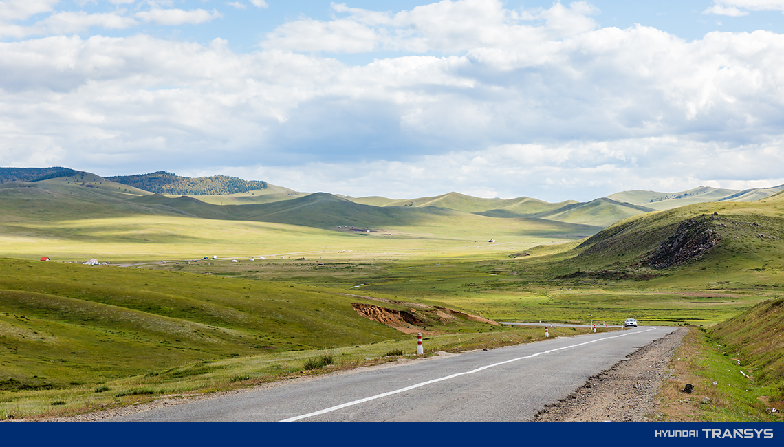 몽골 북부 러시아와 접경한 국경도시 알탄불라크에서 수도 울란바토르까지 가는 300km가 넘는 길이죠. 일명 아시안 하이웨이(Asian Highway) 3번 도로(AH-3)입니다. 하늘은 파랗고, 구름은 낮고 웅장하며, 어느 곳을 봐도 지평선이 가득합니다.