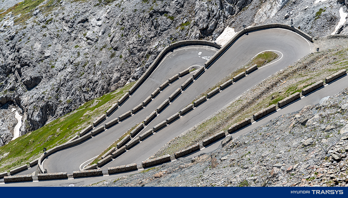 아름답지만 위험한 도로 스텔비오 패스(Stelvio Pass)는 유럽 굽잇길의 대명사 같은 도로입니다. 스위스 동쪽과 이탈리아 북부를 연결하는 이 도로는 여러 갈래로 이어지죠. 그중에서 가장 유명한 코스는 이탈리아 북부 트라포이를 거쳐 올라가는 길입니다. 180° 넘게 꺾인 헤어핀이 48개나 이어집니다. 그 길을 업힐로 공략할 수 있습니다. 그렇다고 속도를 과감하게 올리긴 힘듭니다. 코너라기보다는 유턴 수준인 데다 길도 좁습니다. 길이 열리는 시기는 한정적입니다. 7, 8, 9월에 열리고 6, 10월에는 날씨에 따라 통제할 수도 있습니다. 아무 때나 지날 수 없는 길이지만 그만큼 달릴 가치는 충분하죠.