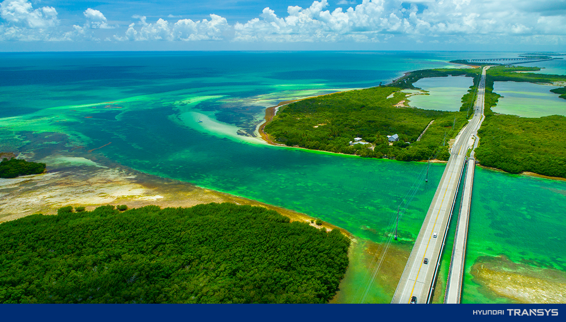 오버시즈 하이웨이(Overseas Highway)는 미국 마이애미에서 출발해 키웨스트까지 40여 개의 플로리다 키스섬을 연결하는 202km의 도로입니다. 길이가 긴 만큼 바다 위를 달리는 기분은 한층 생생해집니다. 중간중간 바다에 흩뿌려진 섬 풍광까지 곁들여지면 어느 순간, 드라이브가 아닌 항해하는 기분이 들지도 모르죠. 다리는 직선 위주지만 고저의 차가 있는 경우도 있습니다. 덕분에 내리막 도로에선 바닷속으로 뛰어드는 짜릿함을, 오르막 도로에선 하늘로 날아가는 황홀함을 느낄 수 있습니다.