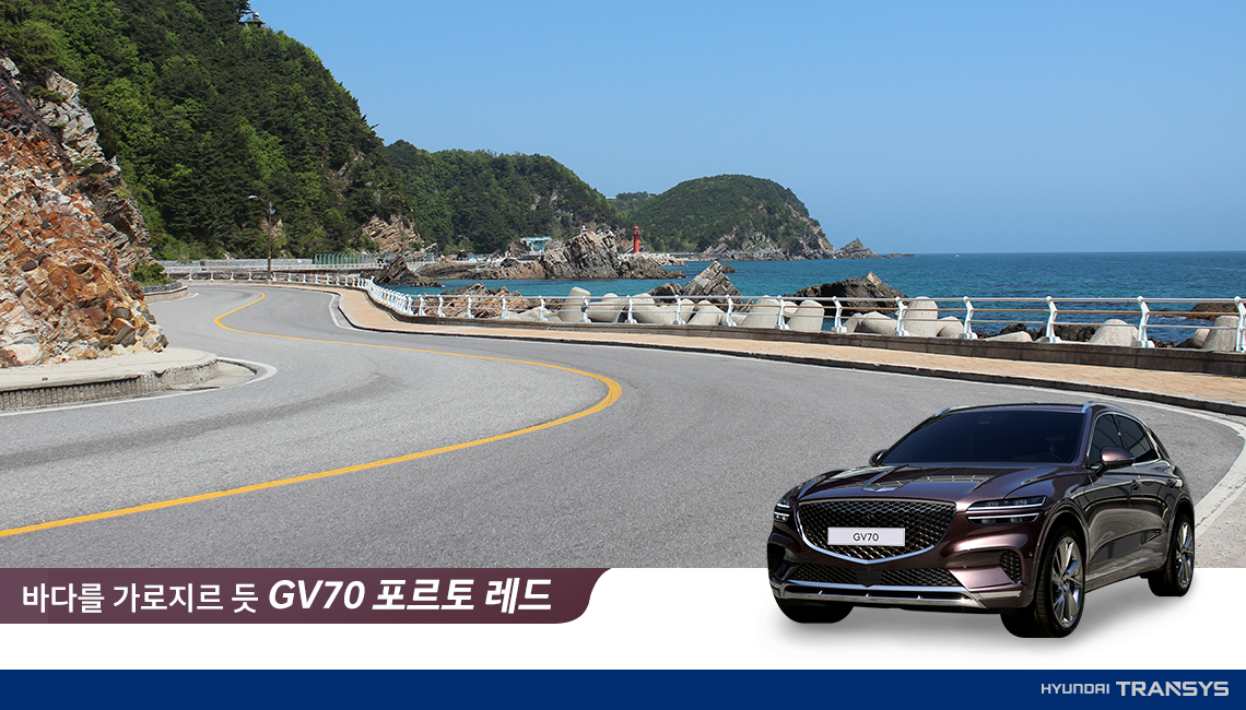 추천! 기암괴선과 쪽빛 바다가 어우러진 도로를 제네시스 GV70 포르토 레드 컬러와 함께