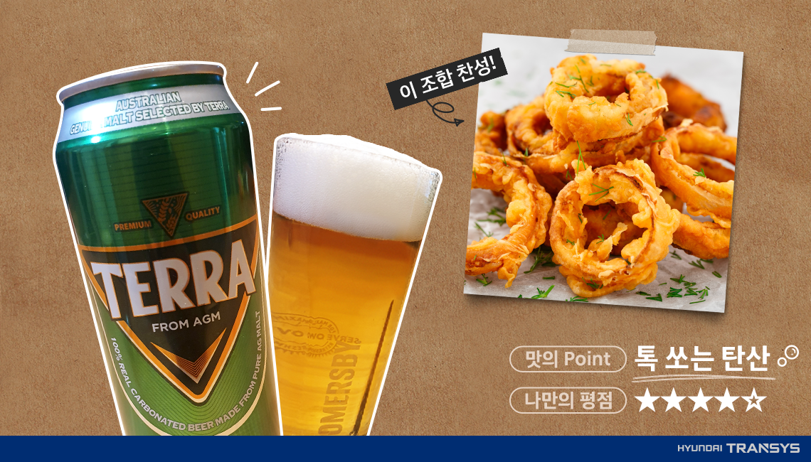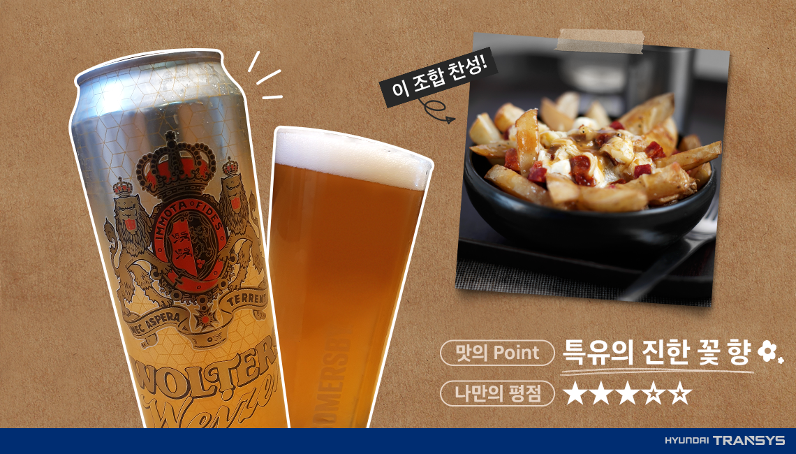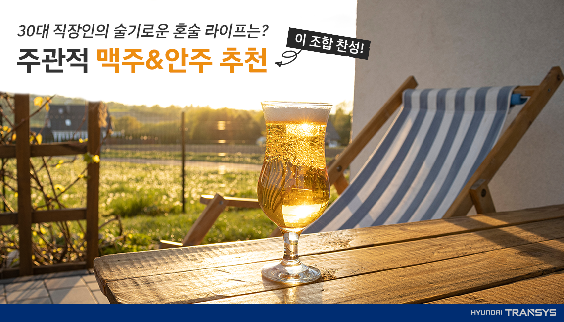 최근 코로나19 이슈로 인해 혼자 즐길 수 있는 취미생활이 주목받고 있습니다. 많은 분이 혼밥(혼자 밥 먹기), 혼영(혼자 영화 보기), 혼술(혼자 술 마시기)을 통해 시간을 보내고 계실 텐데요. 여러분들은 혼자 시간을 보내고 싶을 때 주로 무엇을 하시나요? 저는 보통 혼술을 하고는 합니다. 현대트랜시스에서 일을 마치고 집에서 시원한 맥주를 한 모금을 마실 때면 하루 묵은 피로가 싹 내려가는 느낌이죠. 술은 기쁜 일과 함께, 슬픈 일과 함께, 이제는 현대인들의 동반자입니다. 다양한 술 종류 중 오늘은 퇴근 후 가볍게 마시기 좋은 맥주를 소개해드리려고 합니다. 그럼 프로 혼술러가 추천하는 ‘술’기로운 직장생활! 함께 확인해보세요.