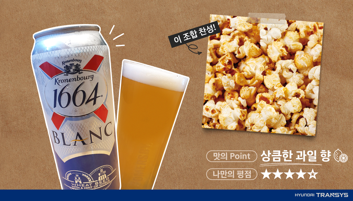 최근 코로나19 이슈로 인해 혼자 즐길 수 있는 취미생활이 주목받고 있습니다. 많은 분이 혼밥(혼자 밥 먹기), 혼영(혼자 영화 보기), 혼술(혼자 술 마시기)을 통해 시간을 보내고 계실 텐데요. 여러분들은 혼자 시간을 보내고 싶을 때 주로 무엇을 하시나요? 저는 보통 혼술을 하고는 합니다. 현대트랜시스에서 일을 마치고 집에서 시원한 맥주를 한 모금을 마실 때면 하루 묵은 피로가 싹 내려가는 느낌이죠. 술은 기쁜 일과 함께, 슬픈 일과 함께, 이제는 현대인들의 동반자입니다. 다양한 술 종류 중 오늘은 퇴근 후 가볍게 마시기 좋은 맥주를 소개해드리려고 합니다. 그럼 프로 혼술러가 추천하는 ‘술’기로운 직장생활! 함께 확인해보세요.