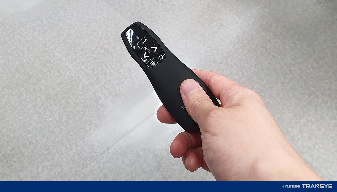 제가 실제로 사용하는 위의 제품은 회의 중 발표자가 많이 쓰는 레이저포인터와 프리젠테이션 조작기능을 통합한 프리미엄 제품인데요. 일반적으로 많이 쓰는 빨간색 레이저포인터보다 시인성이 좋은 녹색 레이저포인터를 사용해서 다른 곳을 보고 싶어도 내가 찍은 곳을 볼 수밖에 없도록 만들어 줍니다. 게다가 오퍼레이터에게 ‘다음 페이지’, ‘이전 페이지’를 말할 필요도 없이 어느 자리에서 발표하건 내가 직접 페이지를 이동할 수 있어 발표의 템포를 자연스럽게 이어 나갈 수 있도록 도와줍니다.